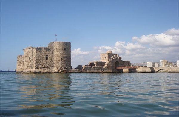 1 – Le Château de la Mer est une forteresse construite par les Croisés au cours du 13ème siècle sur un îlot qui commande le port et qui était relié au rivage par un pont à moitié construit, à moitié mobile. Seule la pile Nord, la plus proche du Château est originale; les deux autres piles à becs, détruites par une tempête en 1936 sont modernes de même que la partie du pont proche du rivage. Cette construction faite de matériaux arrachés à des monuments antiques fut réalisée en plusieurs étapes entre 1227 et 1291, date de la prise de Sidon par les Mameluks. Son état actuel présente d’importantes réfections de l’époque mameluk particulièrement à la tour Ouest. Quant à la petite mosquée attenant à la chapelle croisée, elle date plutôt de l’époque ottomane et doit être postérieure à 1840 date du bombardement du Château par la marine britannique.